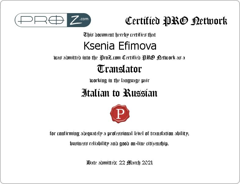 2016 – Laurea Magistrale in Traduzione e Interpretazione presso l’Università Statale di San Pietroburgo